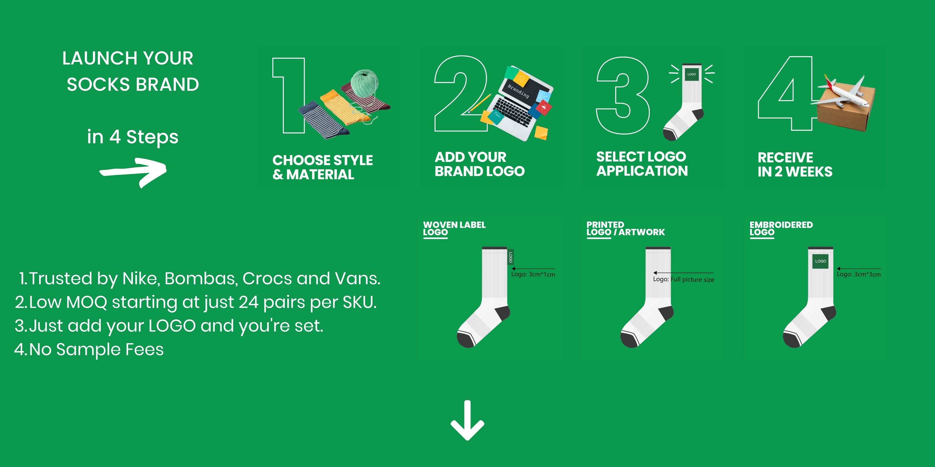 We make socks for Nike, Bombas, Crocs, Vans and Asics, now its your turn!